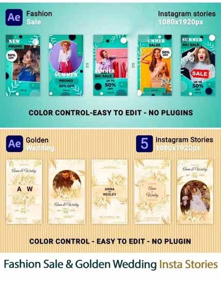 2 Instagram Story After Effects Projects Selling Fashion Clothes and Wedding Cards | 85.1 MB | Comes with Preview | AEP & MP4 & JPG format