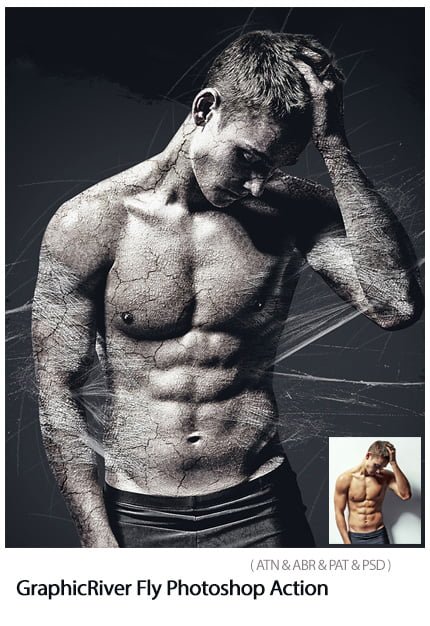 Fly Photoshop Action Photoshop Action Create cracking effects on images from River Graphics | 14.4 MB | ATN & ABR & PAT & PSD format