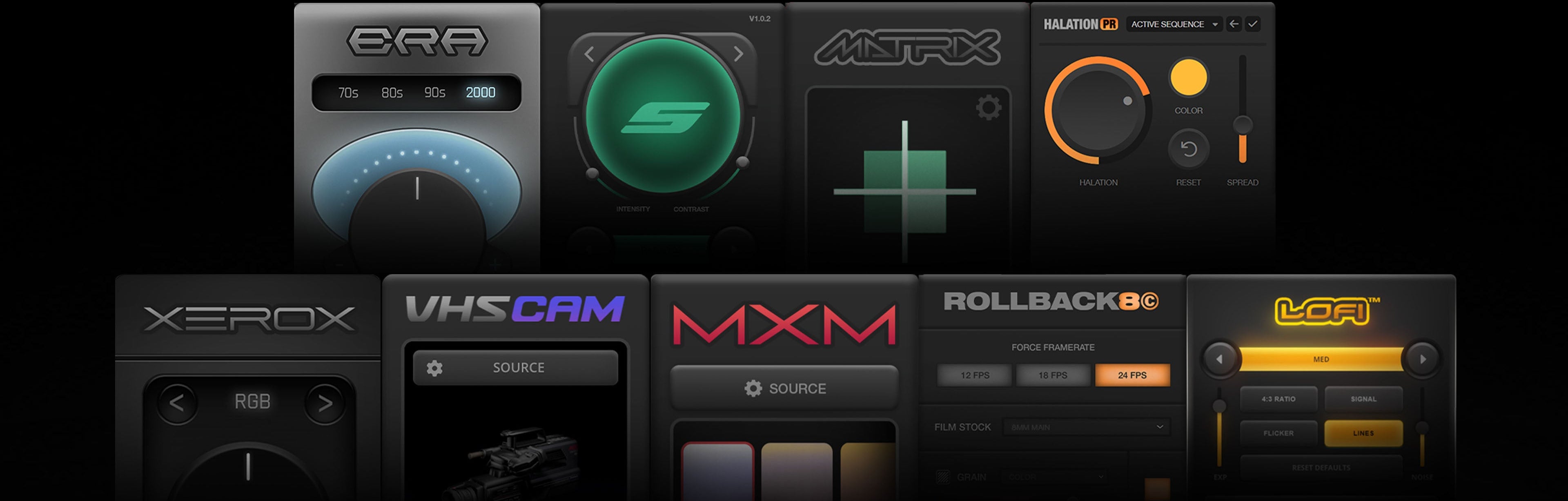 (LoFi, Rollback8, Matrix, Spectrum, MXM, HalationPR, VHScam, Xerox, ERA)