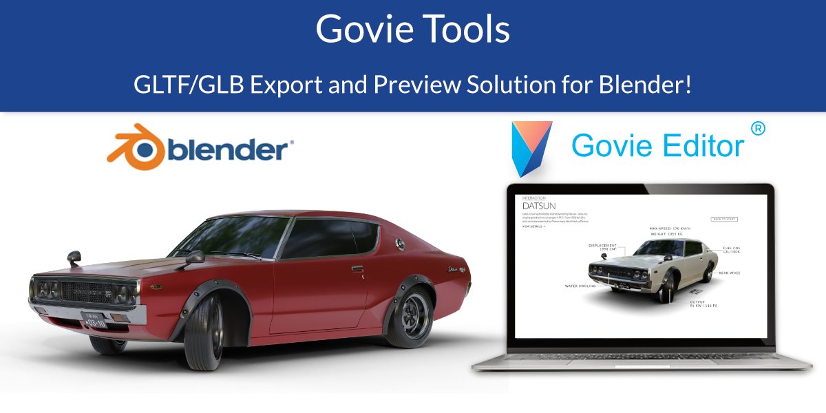 This add-on is best used in combination with the Govie Editor, but it can also be very useful for anyone working with GLTF, using Three.js or Babylon.js.