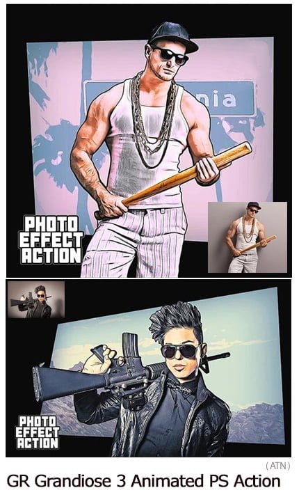 Create cartoon effect, inspired by GTA effect art style from your photos with no work at all! Open your photo, simply brush over your subject and just play the action. It’s really that simple! Using the GTA Photoshop action you can now transform your photos into GTA art style in no time!