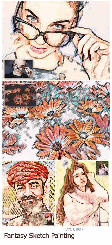 Photoshop Action Convert Photo to Fantasy Sketch Painting | 1.11 MB | Comes with Preview | ATN & JPG Format