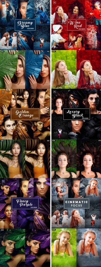 In this pack, you can see 6 Photoshop actions titled grading and changing the color of images, which have been placed on the site for download in ATN and JPG formats.