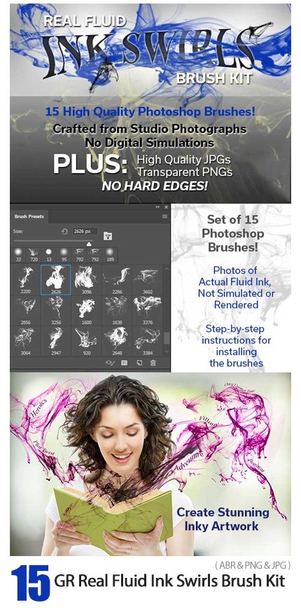 Get 15 Unique Photoshop Ink Swirl Brushes. These high quality brushes have been crafted from studio photographs of actual ink swirls in water. No Simulations No Renderings.