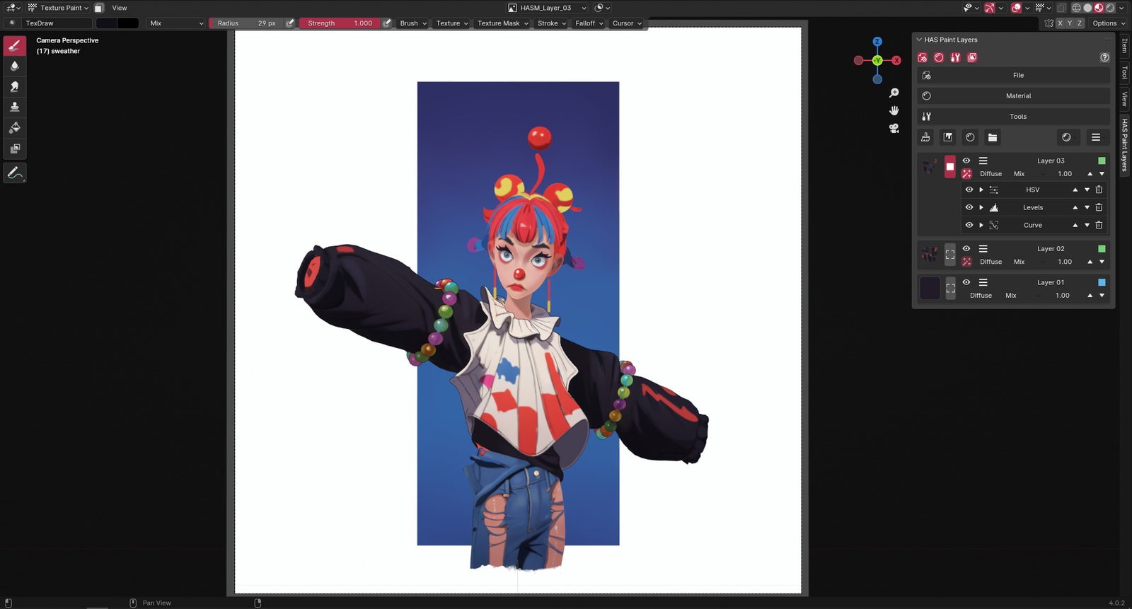 Note: HAS Paint Layers transforms texture painting in Blender by introducing professional, layer-based workflows that have been missing from native painting tools . The non-destructive layer system, blend modes, and adjustment layers make it possible to iterate on textures without losing previous work . Perfect for texture artists, character painters, and anyone needing professional painting capabilities in Blender . Version 0.2.9 includes full compatibility with Blender 4.0 and above . Designed for Blender 3.0 and above . Graphics tablet recommended .