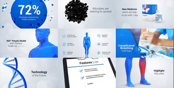 Healthcare & Medicine Promo – it is After Effects medicine template which allows you to present medical slides about drug, healthcare,disease,Supplements,healing and other by using titles,human bodys,infographics, photos and videos, pack and box.