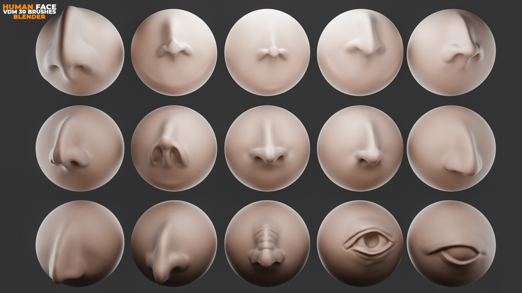 Human Face VDM Brushes v1.1 for Blender – Professional Face Sculpting Brush Library
