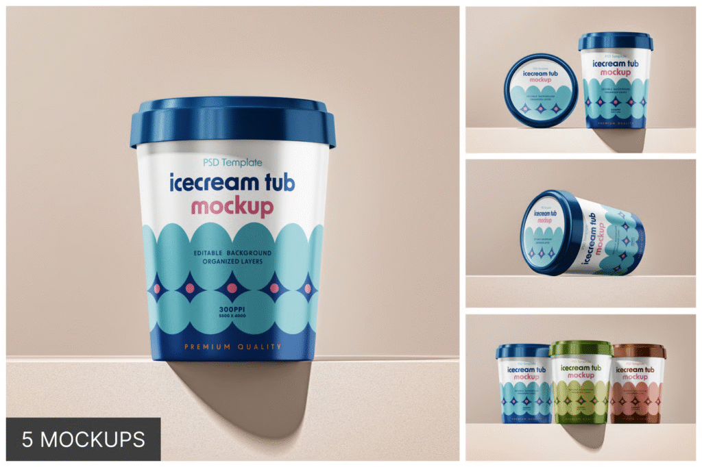 Ice Cream Container Mockup Collection | 864 MB | Comes with Preview | PSD & JPG Format