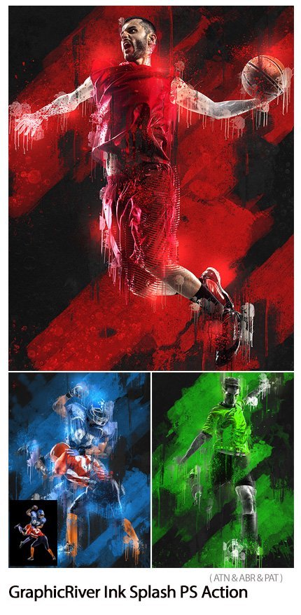 Ink Splash Photoshop Action Create ink effect sprayed on images from River Graphics | 15.0 MB | ATN & ABR & PAT format