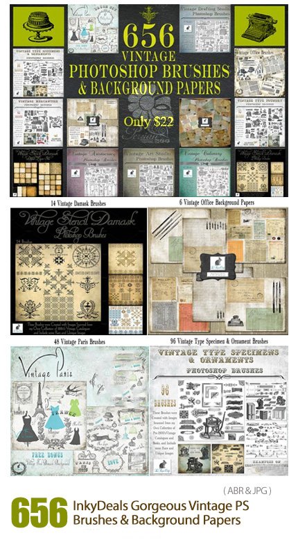 InkyDeals Gorgeous Vintage PS Brushes And Background Papers