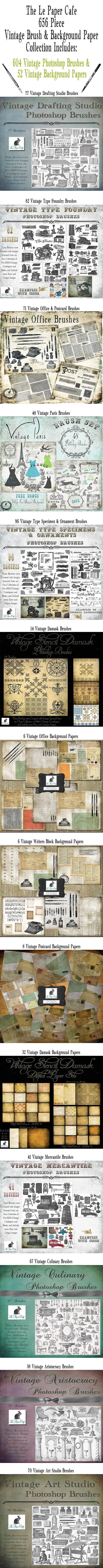 Vintage Photoshop: This essential 656-piece variety pack of some of Le Paper Cafe’s best-selling vintage background papers and brushes is a must-have set for any designer.