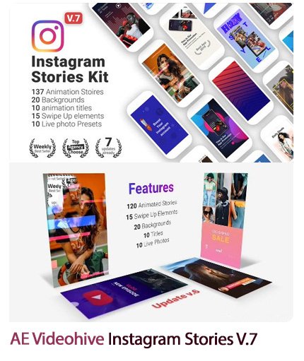 This collection includes ready-made Instagram stories for After Effects, along with a video tutorial , which is available on the site in AEP and MP4 formats.