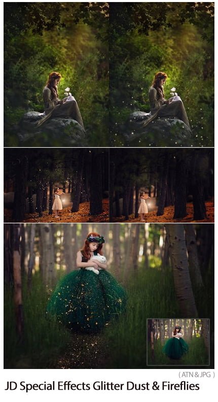 JD Special Effects Glitter Dust And Fireflies Photoshop action and cover images with dust effects, glowing particles and fireflies | 108 MB | ATN & JPG format