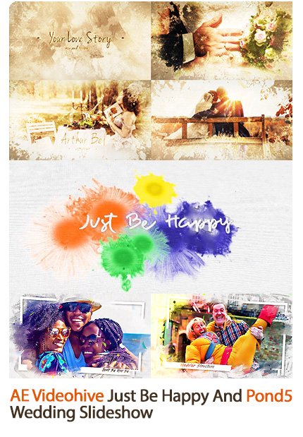 slide show templates with watercolor and romantic effects for weddings in After Effects | 1641 MB | With preview | AEP & MP4 format