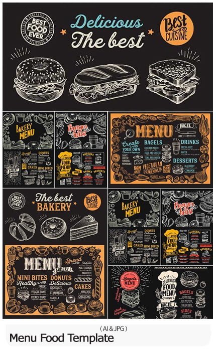 6 restaurant menu vector templates with hand drawn designs 50.9 MB | With preview | AI & JPG format