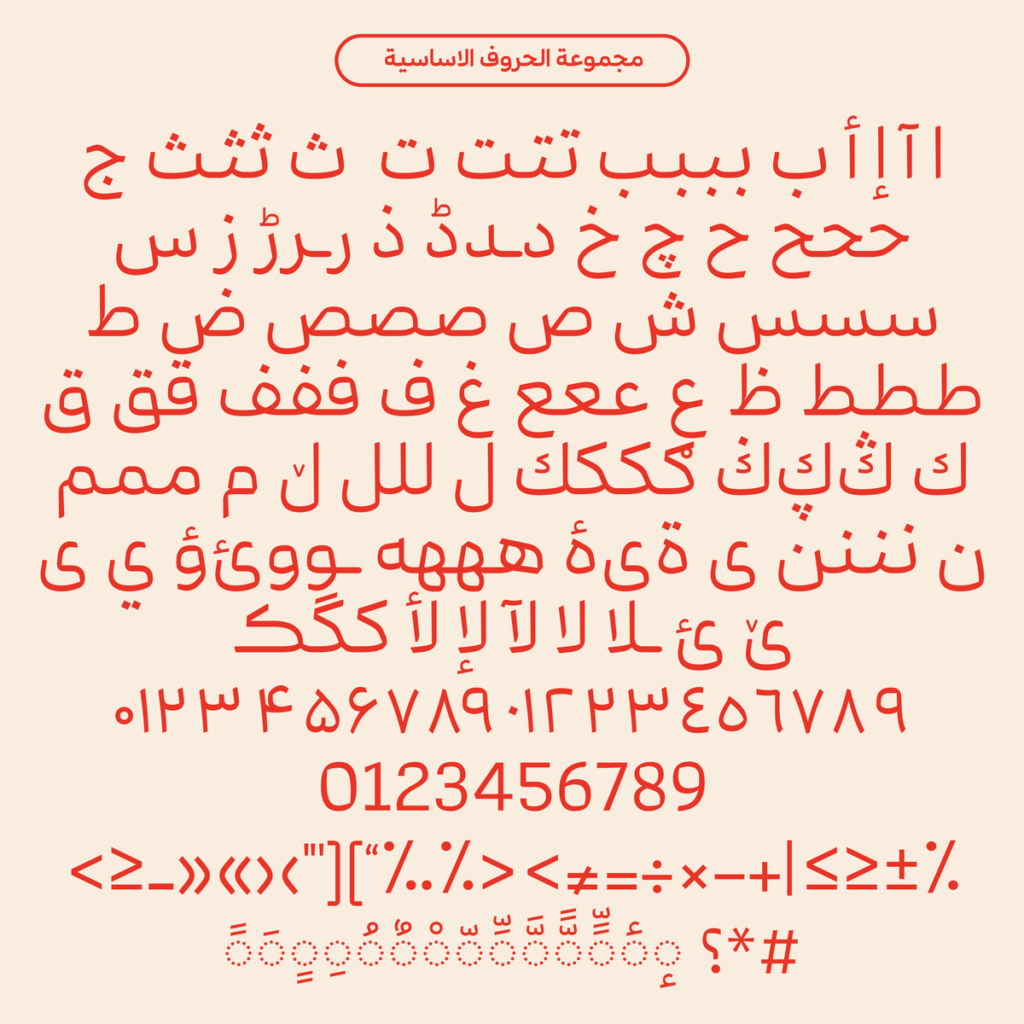 The typeface comes with 9 weights and Pixels weight, and works in variable axes, the typeface now supports only Arabic-based languages, but in the near future, it would support Latin-based languages, the Typeface is based on Naskh calligraphy, something in between the Iranian and the Arabic styles.