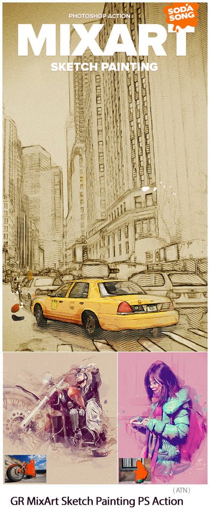 MixArt Sketch Painting Photoshop Action Convert Images to Original Drawing Drawings from River Graphics | 1.23 MB | ATN format