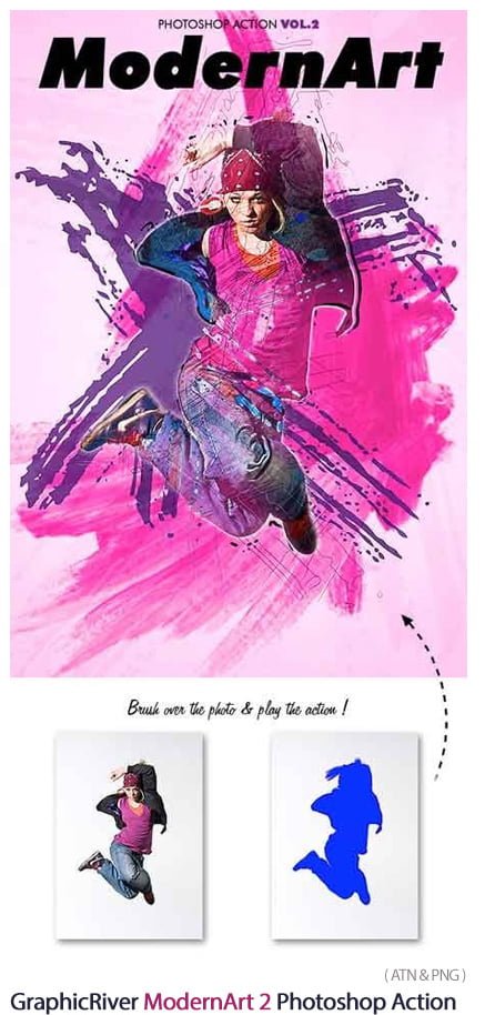 ModernArt 2 Photoshop Action Create watercolor art effects on images | 25.2 MB | ATN & PNG format