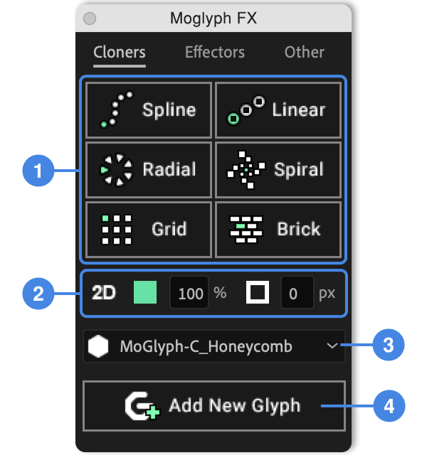 The MoglyphFX Cloners, Glyph shapes and Effectors