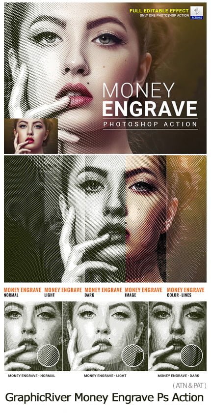 It’s a nice Photoshop Action that turns any image into a realistic engrave effect, just like the dollar bills. You can customize with any color you desire. I have tried to make the item very easy to use.