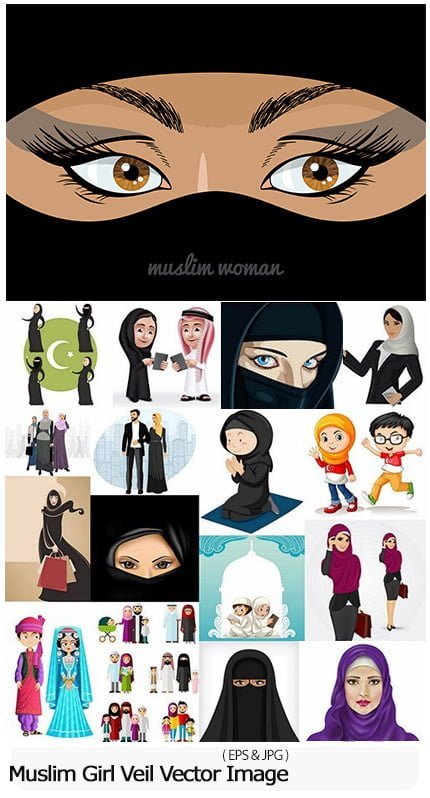 Muslim Girl Woman Veil Cartoon Vector Image 25 vector pictures of Muslim girls with hijab | 66.3 MB | Comes with preview | EPS & JPG format