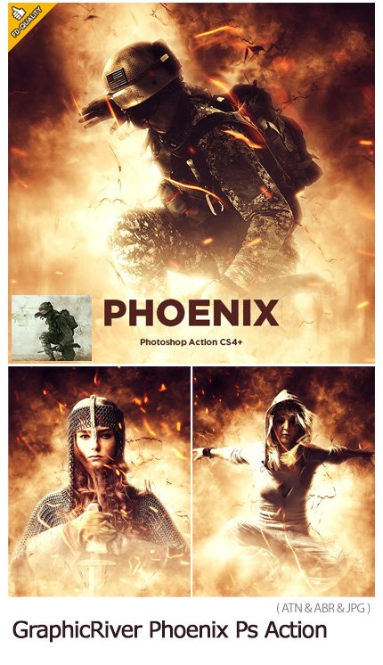 Photoshop Action Create fiery phoenix effect on images with video tutorial from River Graphics | 5.78 MB | With preview | ATN & ABR & JPG format