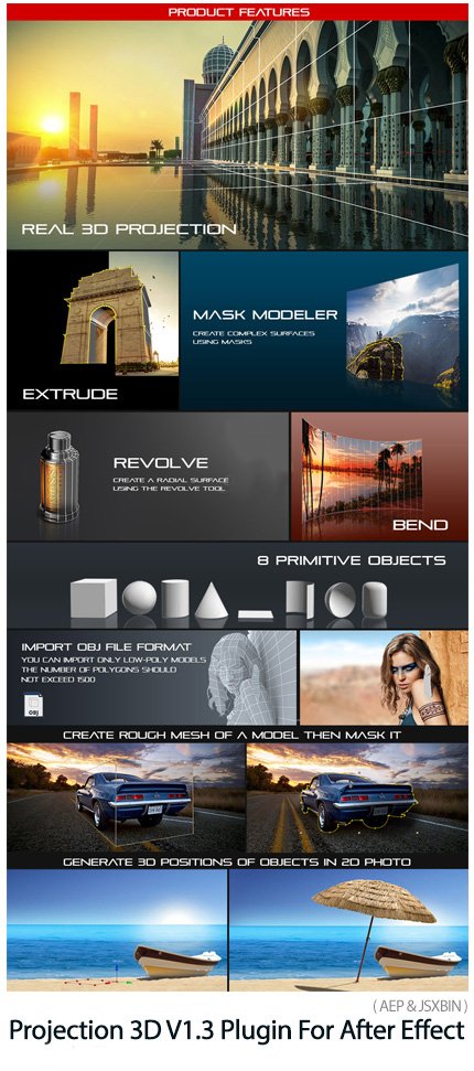 Aftereffect Plugin 3D shapes and images and make a rotating view of them | 89.0 MB | AEP & JSXBIN format