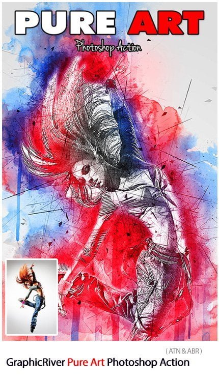 pure art photoshop action Create watercolor art effects on images from River Graphics | 9.37 MB | ATN & ABR format
