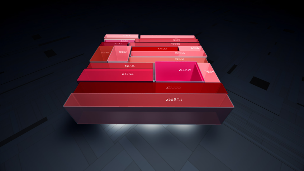 of tiled vector rectangles, simulating the data visualization method also known as treemapping.