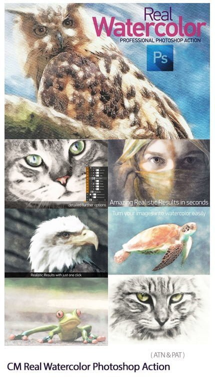Real Watercolor Photoshop Action Converts Images to Real Watercolor Painting | 11.0 MB | ATN & PAT format