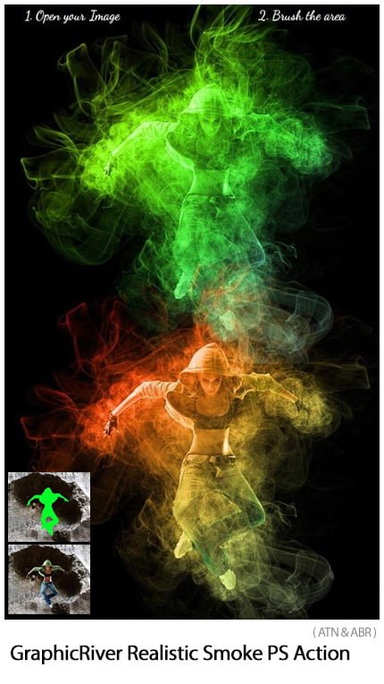 Realistic Smoke Photoshop Action Create real smoke effects on images from River Graphics 0.96 MB | ATN & ABR format