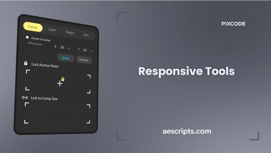Download Responsive Tools v1.0 for After Effects on Windows and Mac, a powerful script that automates the setup of responsive layouts for Motion Graphics Templates (MOGRTs). This essential tool eliminates the need for complex expressions and manual configuration when creating templates that need to adapt to different aspect ratios and text lengths in Premiere Pro.