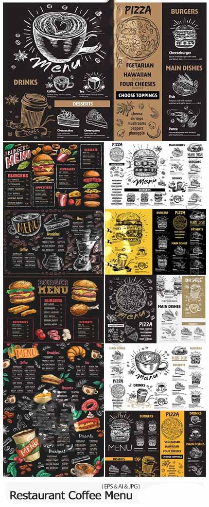11 Cafe, Restaurant & Fast Food Menu Vector | 124 MB | Comes with Preview | EPS & AI & JPG FORMAT