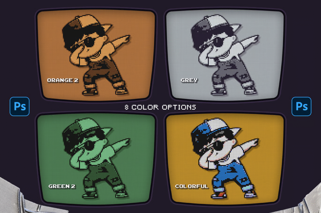 In this section, you can see the Photoshop action of converting images to a retro pixel design, which has been placed on the site for download in ATN, PAT, and JPG formats. This action allows users to apply retro or vintage graphic effects to their images and photos with a simple click. This Photoshop action is commonly used to create a realistic style style of past decades, such as the 70s and 80s. Influences include changes in certain colors, textures, objects, and design styles. This tool is useful for graphic designers and image artists, allowing them to quickly turn their images into vintage and interesting representations.