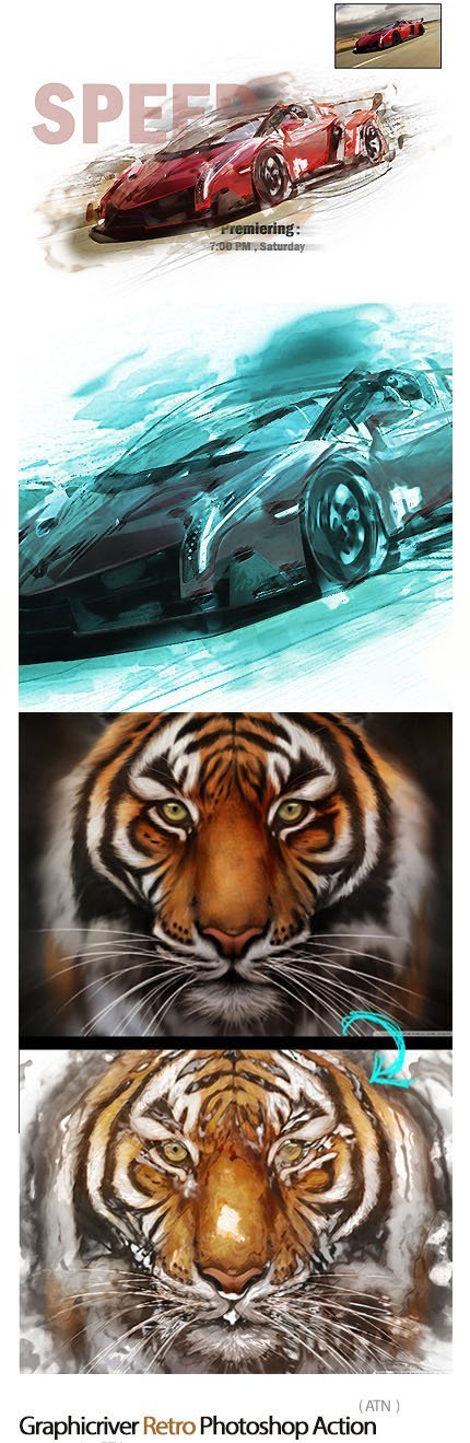 Retro Photoshop Action Create an old watercolor effect on images | 65.8 MB | ATN format