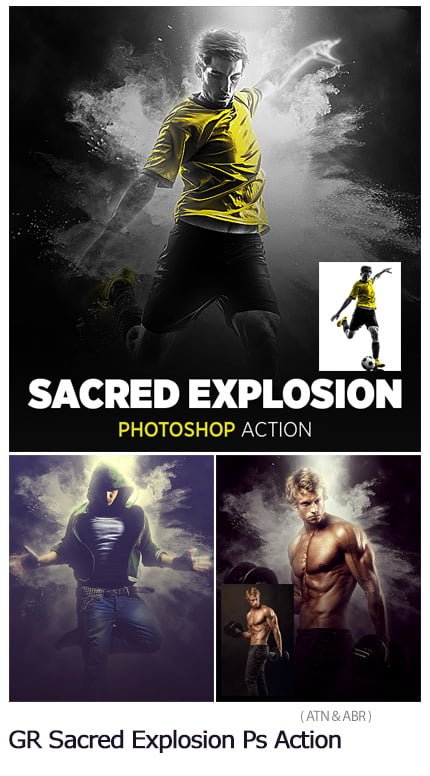 In this collection, you will see another example of Photoshop action entitled Creating a powder explosion effect on images , which is available for download in ATN and ABR formats.