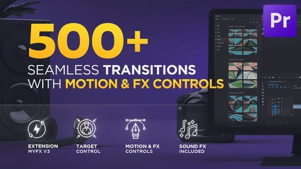 | MYFX v3.0 ExtensionOver 500+ Seamless Transition PresetsUnique Sound FX for each categoryExplore the full library of Transitions right hereIn-Depth Online Video TutorialAbility to control target for seamless transitionsAbility to control motion for seamless transitionsAbility to control effects for seamless transitionsSuper easy to use, even for beginners in Premiere ProMOGRT-based presets, no need for lots of adjustment layersProject works with Premiere Pro 2021 (15.0.0) and above |