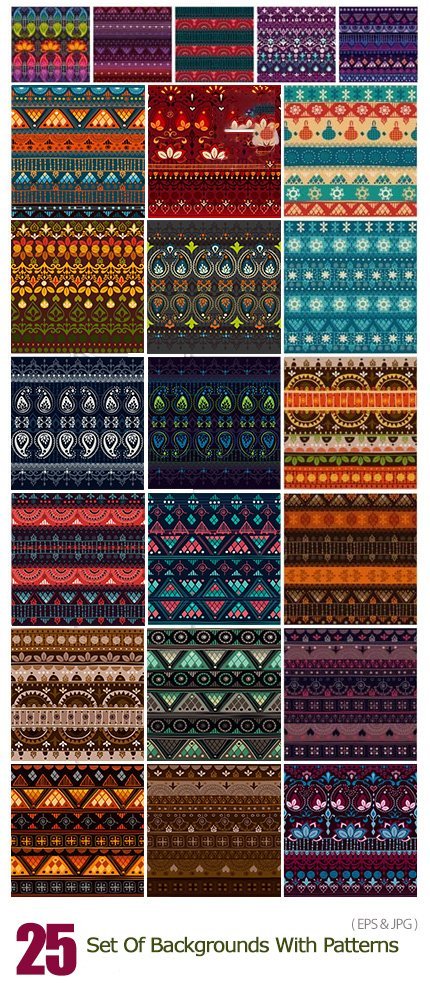 Set Of Vector Backgrounds With Different Patterns 25 Background Vector Images with Various Patterns | 185 MB | Comes with preview | EPS & JPG format