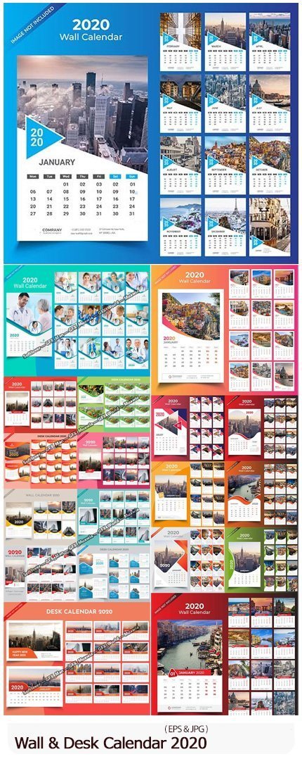 24 vector desktop and wall calendars 2020 | 63.6 MB | With preview | EPS & JPG format