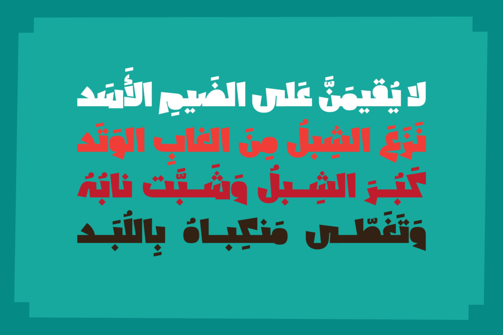 Shakhabeet (which is the Arabic word for Scribbles) is an Arabic display font that features casual letterform design with a heavy weight. The font’s spontaneous style makes it a good companion to digital illustrations. Shakhabeet is suitable for creative titles, advertising, branding and publication design. It is also suitable for web design, print and mobile applications.