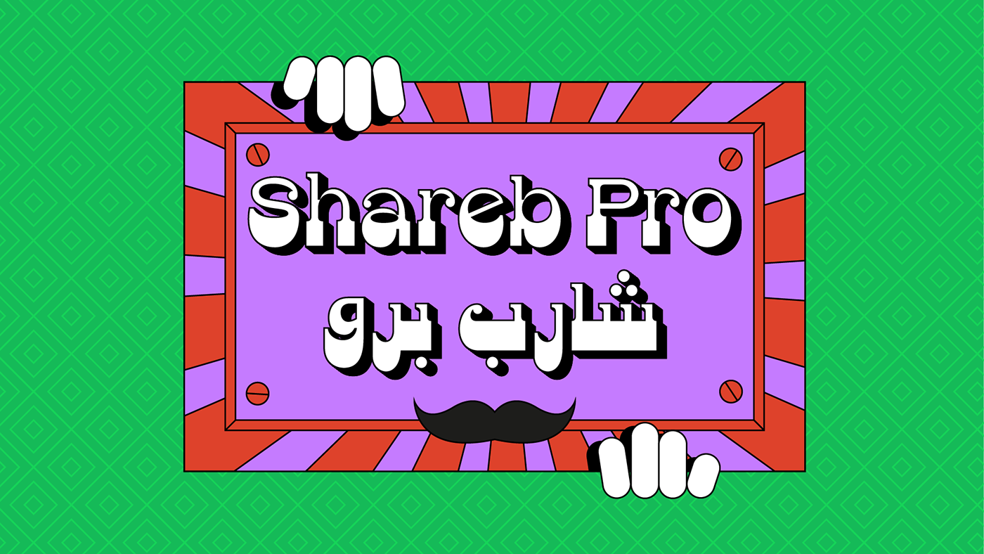 Shareb font was initially designed with a different style compared to other Arabic typefaces. It was released as a free display typeface and went popular. Therefore, we decided to take it to the next level. Accordingly, we worked on the Arabic letters again, enhancing and fixing them. We also added new features like stylistic sets, ligatures, and a complete Latin set of letters so that the font can be used in the most needed languages. Now, we have a more professional, refined, and larger display typeface that can be used in more great projects.