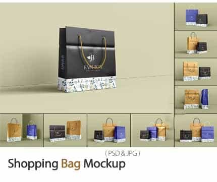 A shopping bag mockup set is a set that allows you to display your designs, logos, or motifs on a shopping bag. The collection includes several mockups with different designs and styles, giving you the flexibility and facilities you need to display your designs creatively and professionally. By using this collection, you can display your designs and brands in a realistic and high-quality way and have a greater impact on your audience in an environment similar to reality. The shopping bag mockup collection is commonly used in designs related to e-commerce, packaging design, and marketing, and it is recommended for designers and merchants to display their products beautifully and realistically, which are placed on the site for download in PSD and JPG formats.