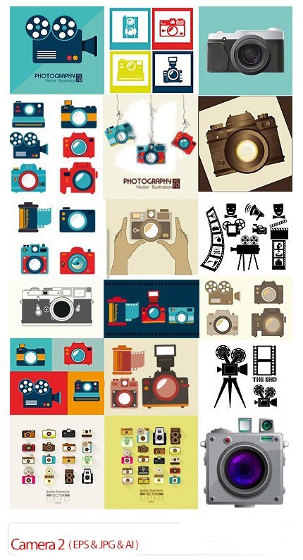 In this collection, you can see 25 vector images of cameras, camcorders, etc., these images are in EPS, JPG, and AI formats and are posted on the site.