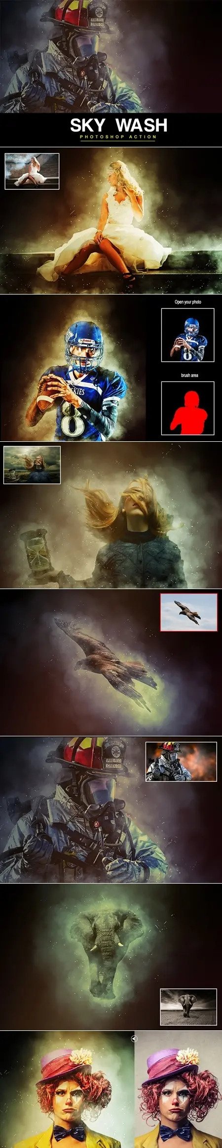 This action will give your images a modern look.Non destructive layers, fully adjustable to help you get the best results.Create professional Sky Wash Photoshop Action from your photos in the easiest possible way. Not only is it simple to generate the Sky Wash Photoshop Action , it then becomes lots of fun playing around with all the layers! Everything remains layered giving you lots of creative control.