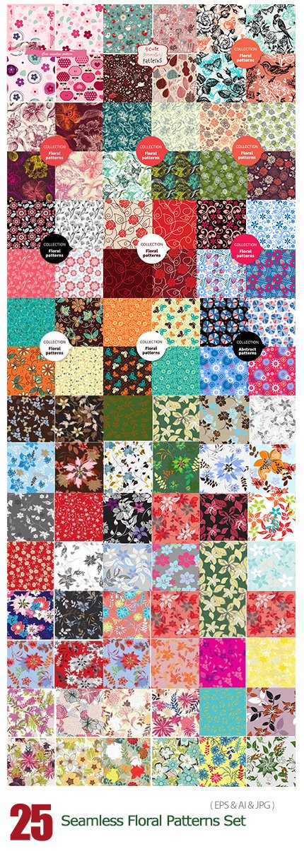 25 vector pattern images with decorative floral designs | 97.3 MB | With preview | EPS & AI & JPG format
