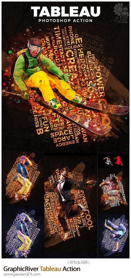 In this collection, you can see another example of the effect of images in the form of action and the title of making a typographic board on the background of images , which is available on the site for download in ATN and ABR formats.