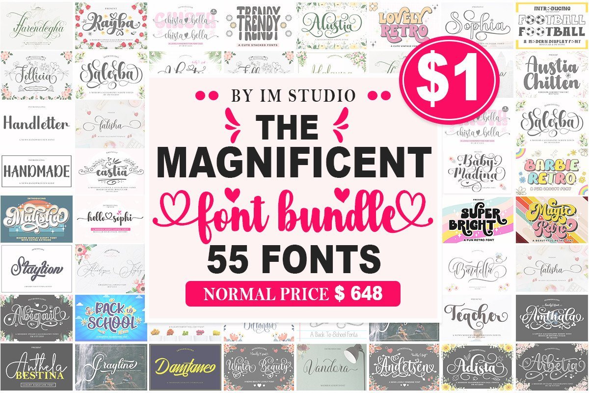 The Magnificent Font Bundle is packed with 55 gorgeous fonts – including multiple styles to fit your every crafting need.