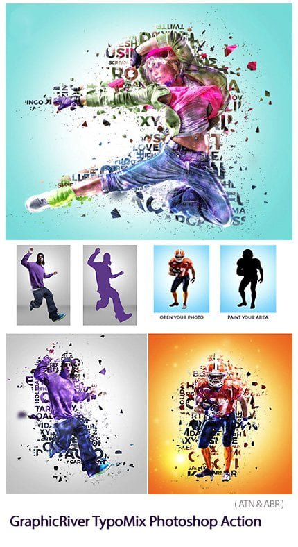 TypoMix Photoshop Action Compilation of typography with photos of River graphics | 0.42 MB | ATN & ABR format
