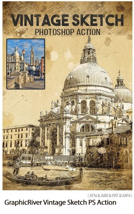 Vintage Sketch Photoshop Action Converts images to old prototypes | ATN & ABR & PAT format