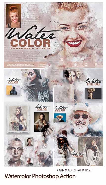 Photoshop Action Making Artistic Watercolor Designs | 16.1 MB | Comes with Preview | ATN & ABR & PAT & JPG FORMAT